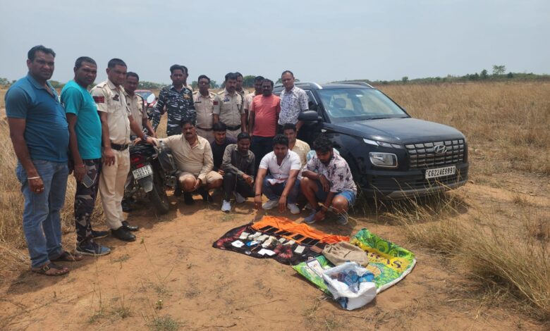 सारंगढ़ । नाम पता आरोपी दामोदर साहू पिता पिरीत राम साहू उम्र 42 साल अमलीडीह थाना गिधौरी जिला बलौदा बाजार राम साहू पिता गणेश राम साहू उम्र 31 साल साकिन पीकरी थाना कसडोल जिला ब.बाजार, नंदलाल यादव पिता छेदी लाल यादव उम्र 35 साल साकिन तुम्मा थाना शिवरीनारायण जिला जांजगीर चांपा राकेश कुमार कोल्ता पिता बलदेव कोल्ता उम्र 25 साल साकिन तुम्मा थाना शिवरीनारायण जिला जांजगीर चांपा ,किशोर कोयल पिता जगदीश कोयल उम्र 23 साल साकिन मोहतरा थाना गिधौरी जिला ब.बाजार ,महावीर साहू पिता श्याम लाल साहू उम्र 43 साल साकिन कौआताल थाना बिलाईगढ , जितेन्द्र कुमार साहू पिता जवाहर साहू उम्र 29 साल साकिन कौआताल थाना बिलाईगढ जिला सारंगढ बिलाईगढ के है।