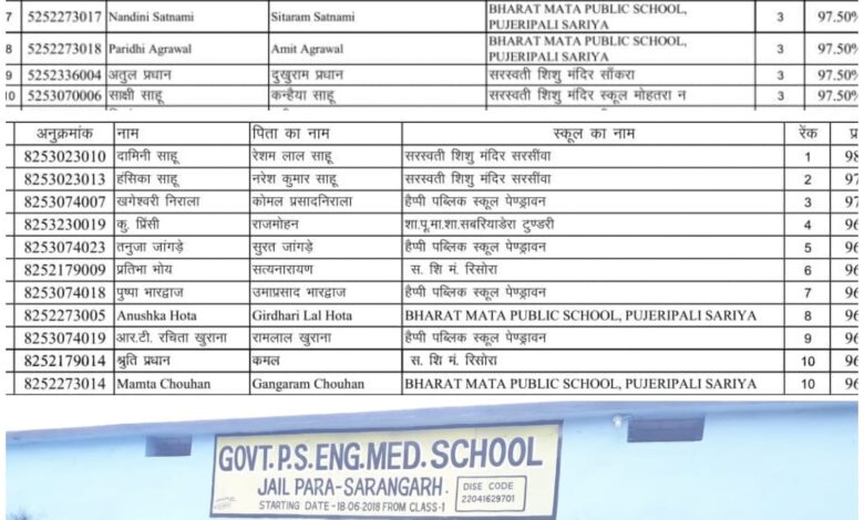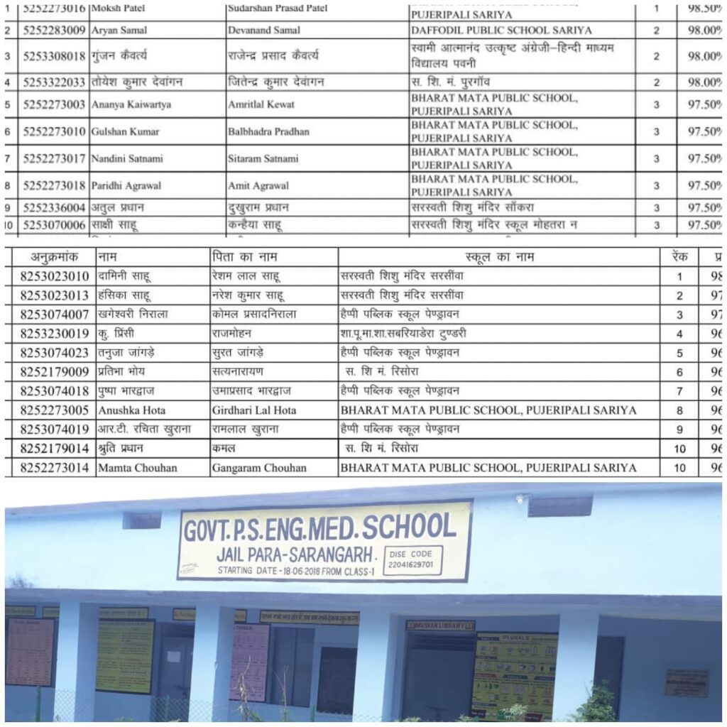 केंद्रीकृत परीक्षा परिणाम 2025 : सारंगढ़-बिलाईगढ़ जिले का उत्कृष्ट प्रदर्शन