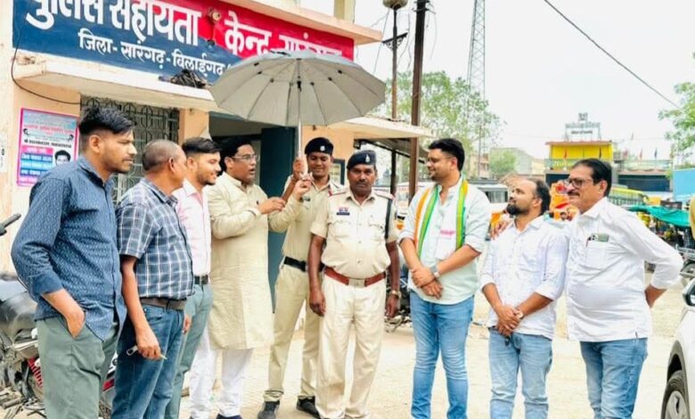 *गर्मी में खड़े पुलिस जवानो को जिलाध्यक्ष ने छतरी भेंट की*