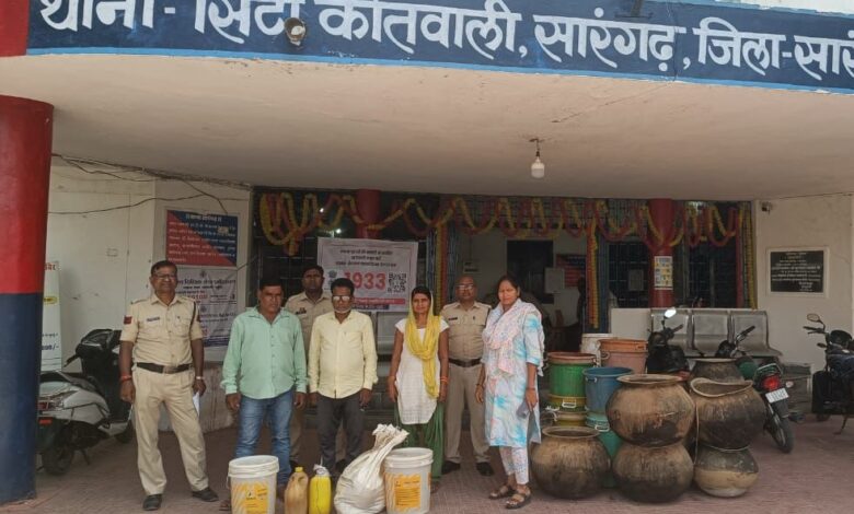 विदित हो कि – अप0क्रं0 228/ 25 धारा 34 (2) 59 (क) आबकारी एक्ट में 20 मई 25 को जरिये मुखबिर सूचना पर – ग्राम कोतरी में घर आंगन में अवैध शराब बना कर बिक्री हेतु रखा है । सूचना पर हमराह स्टाफ एवं गवाहान के घटना स्थल कोतरी जाकर घेराबंदी कर रेड कार्यवाही किया गया जहां शिवशंकर जांगड़े पिता गनपत जांगड़े उम्र 48 वर्ष , गौरीशंकर जांगड़े पिता गनपत जांगड़े उम्र 50 वर्ष, रम्भा देवी जांगड़े पति शिव शंकर जांगड़े उम्र 45 वर्ष साकिनान कोतरी के कब्जे से कुल 90 बल्क लीटर कच्ची महुआ शराब एवं 08 नग सिल्वर गंज व प्लास्टिक का हत्थावाला 40 लीटर क्षमता वाली खाली बाल्टी 35 नग जुमला कीमती 18 हजार रू. को मुताबिक जप्त कर कब्जा पुलिस लिया गया । आरोपीगणो को विधिवत गिरफ्तार कर न्यायिक रिमाण्ड पर जेल भेजा गया। उक्त कार्यवाही में सारंगढ़ बिलाईगढ़ पुलिस की संयुक्त टीम की प्रमुख भूमिका रही।