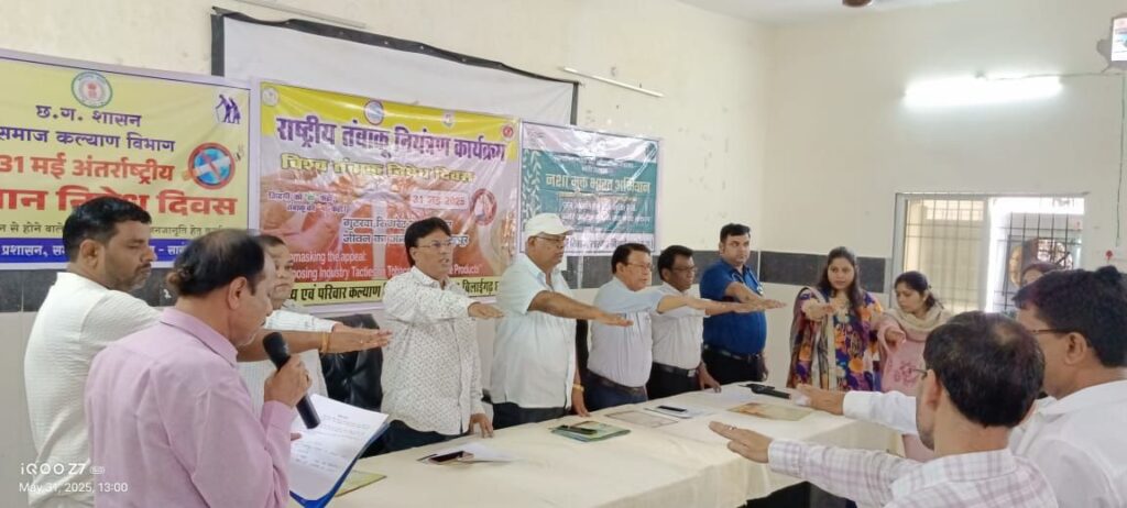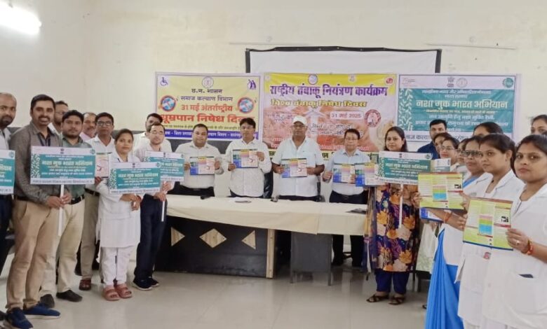 कलेक्टर डॉ संजय कन्नौजे के निर्देशन में चलाए जा रहे हैं नशा मुक्त कार्यक्रम के अंतर्गत नशा मुक्त भारत निर्माण की थीम पर जन सामान्य को जागृत करने हेतु निरंतर प्रेरक कार्यक्रमों का आयोजन विभाग द्वारा किया जा रहा है ।इसी कड़ी में आज जिला स्वास्थ्य विभाग एवं समाज कल्याण विभाग सारंगढ़ द्वारा संयुक्त रूप से धूम्रपान निषेध दिवस का प्रभावी आयोजन किया ।