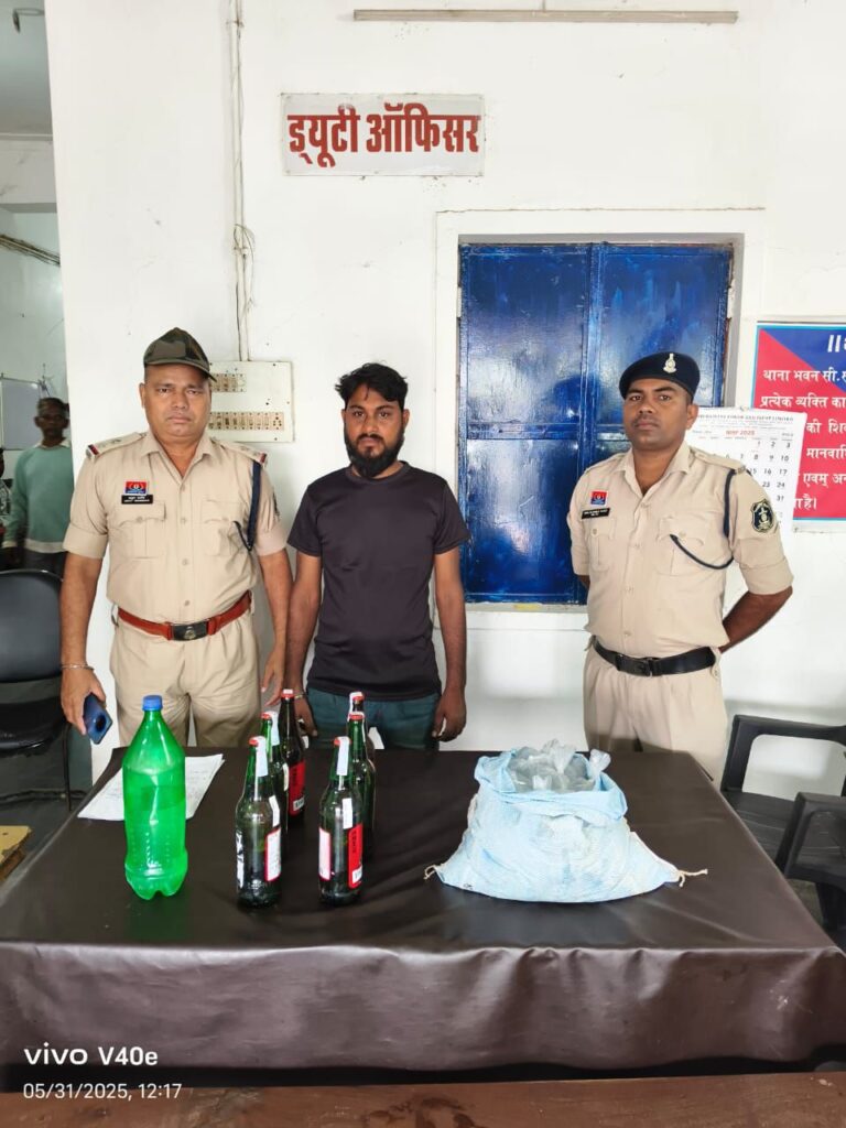 सारंगढ़ । पुलिस अधीक्षक आँजनेय वार्ष्णेय,अ. पुलिस अधीक्षक श्रीमती निमिषा पाण्डेय एवं एसडीओपी श्रीमती स्नेहिल साहू के द्वारा अवैध शराब बिक्री पर रोक थाम हेतु लगातार निर्देशित किये जाने पर थाना प्रभारी कोतवाली निरीक्षक कामिल हक के कुशल मार्गदर्शन में थाना सिटी कोतवाली द्वारा अवैध शराब बिक्री करने वाले व्यक्तियों के विरुद्ध कार्यवाही की गई । अपक्रं 251/25 धारा 34 (2) आबकारी एक्ट में 30 मई 25 को जरिये मुखबिर सूचना मिला कि – ग्राम साराडीह में एक व्यक्ति घर आंगन में अवैध शराब बिक्री कर रहा है सूचना पर हमराह स्टाफ एवं गवाहान के घटना स्थल साराडीह जाकर घेरा बंदी कर रेड कार्यवाही कर रंजित टाण्डे पिता चीनीलाल टाण्डे उम्र 34 वर्ष साराडीह के कब्जे से एक हरा रंग के बाटल में भरा एक लीटर कच्ची महुआ शराब किमती 100 रूपया, सफेद पन्नी मे पैक किया कच्ची महुआ शराब 57 पाउच प्रत्येक पाउच में 150 एमएल भरा कुल शराब 8.550 लीटर किमती 900 रूपया, दो शीशी देशी प्लेन शराब प्रत्येक शीशी में 180 एमएल भरा कुल 360 एमएल किमती 160 रूपया , 06 बाटल सिम्बा० बियर प्रत्येक बाटल में 650 एमएल भरा कुल बियर 3.900 लीटर किमती 1200 रूपया कुल जुमला महुआ शराब 9.550 लीटर, 360 एमएल देशी प्लेन शराब 3.900 लीटर बियर कुल किमती 2360 रूपये को जप्त किया गया बाद आरोपी को विधिवत गिरफ्तार कर न्यायिक रिमाण्ड पर भेजा गया ।