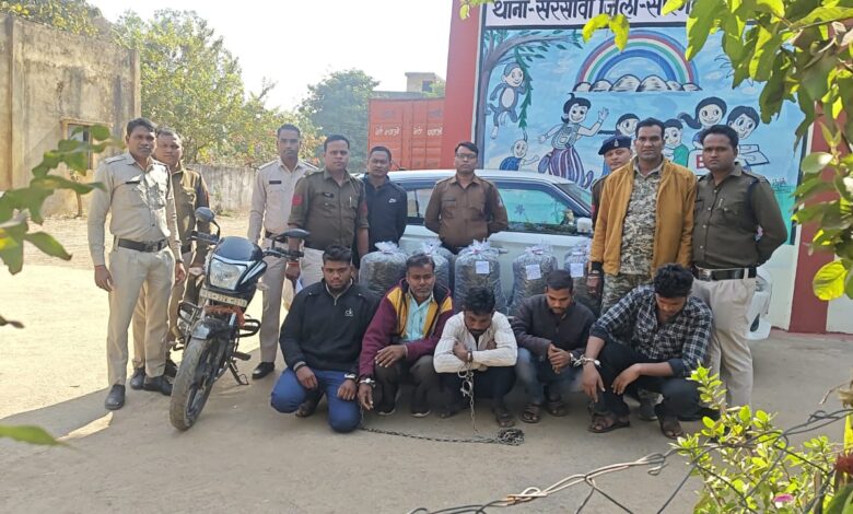 थाना सरसीवां पुलिस की बड़ी कार्रवाई: 05 गांजा तस्कर गिरफ्तार, 45 किलो गांजा और स्विफ्ट कार जप्त