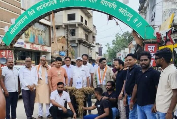 विदित हो कि – कांग्रेस के कार्यकर्ताओं ने भाजपा सरकार की तानाशाही और ईडी की मनमानी को लेकर जमकर नारेबाजी करते हुए पुतला दहन के बीच पुलिस प्रशासन आग बुझाने में सफल रही जिसका युवा कार्यकर्ताओं ने विरोध किया । उक्त अवसर पर पुरुषोत्तम साहू ब्लॉक अध्यक्ष, पवन अग्रवाल शहर अध्यक्ष, सूरज तिवारी प्रदेश कां. प्रतिनिधि, वरिष्ठ कांग्रेसी संजय दुबे, गोल्डी नायक, विष्णु चंद्रा, राधे जायसवाल विनोद भारद्वाज जिपं सदस्य, राकेश पटेल, शंकर चौहान, लाल बहादुर चंद्र, शाहजहां खान, अश्विनी चंद्र, विजेंद्र गुड्डू यादव, शंकर चंद्रा, विजेंद्र पटनायक, राजू यादव, सतीश श्रीवास, दुर्गेश स्वर्णकार, जितेंद्र पुराइन, मो वसीम, दुर्गेश पटेल, धनेश भारद्वाज, हेमंत चंद्रा, राजेंद्र वारे, शाहजहां बेग, मयंक पटेल, हारून खान, अंकित पटेल, सागर दीवान, भुवनेश्वर भारद्वाज, जितेंद्र भारद्वाज, दीपक साहू, संजय पटेल, खिरोद साहू आदि कार्यकर्ता शामिल रहे।