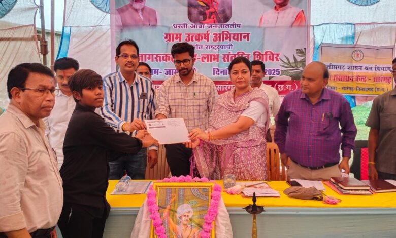 सारंगढ़ । धरती आबा के प्रथम शिविर में शामिल हुई जपं अध्यक्ष श्रीमती ममता राजीव सिंह कार्यक्रम ग्राम जामपाली में छग शासन के द्वारा ग्राम उत्कर्ष अभियान जनजातीय जागरूकता के शिविर में पहुंच कार्यक्रम में उपस्थित जनजातीय समाज व अन्य समाज के लोगों को संबोधित करते हुए कहा कि – समाज में जागरूकता लाने के उद्देश्य से शासन द्वारा चलाए जा रहे अभियान में सभी वर्गों को शामिल कर सामाजिक समरसता का संदेश दिया एव समाज में व्याप्त कुरीतियों , नशाखोरी को रोकने के लिये संकल्प एसडीएम प्रखर चंद्राकर द्वारा दिलाया गया । शिविर में उपस्थित ग्रामीणों को आधार कार्ड वितरित कर बच्चों को शाला प्रवेशोत्सव भी मनाया गया जिसमें बच्चों को शिक्षा के प्रति जागरूक करते हुए उन्हें कापी , स्कूल , ड्रेस वितरण किये गयें और सभी शास. विभाग द्वारा शिविर में स्टाल लगाकर समस्याओं का निराकरण किया गया ।