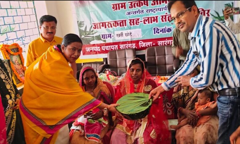 सारंगढ़ । जनपद पंचायत अध्यक्ष श्रीमती ममता राजीव सिंह ने गोद भराई रश्म – धरती आबा शिविर खर्री छोटे में संपंन हुई । आज धरती आबा शिविर के अंतिम दिन अपने जनपदीय क्षेत्र खर्री छोटे में शामिल हो कर ग्रामीणों को संबोधित करते हुए कहा कि – आज के समय में हर क्षेत्र में विकास की अपार संभावनाएं हैं और शासन के द्वारा संचालित योजनाओं को धरातल तक पहुँचाने का प्रयास इस शिविर के माध्यम से सरकार द्वारा किया जा रहा है जिससे ग्रामीण क्षेत्र के लोगों को लाभ मिल सके । शिविर में स्वास्थ्य विभाग से अपना स्वास्थ्य परीक्षण करा कर लोगों को जागरूक किया और लोगों को स्वास्थ्य संबंधी समस्याओं का समाधान हेतु प्रेरित किया ।शिविर में गोद भराई के रस्म अदा कर स्वस्थ जीवन जीने का संदेश दिया साथ ही साथ शाला प्रवेश करा बच्चों को अच्छी शिक्षा प्रदान करने का शाला शिक्षकों को प्रेरित कियें ।