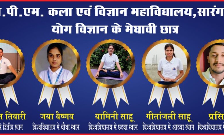 सी पी एम कला एवं विज्ञान महाविद्यालय सारंगढ़ के योग विज्ञान के विद्यार्थियों ने प्रवीण्य सूची मे स्थान दर्ज कर सारंगढ़ क्षेत्र को किया गौरवान्वित