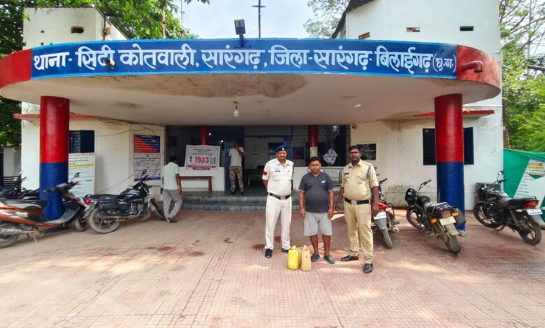 सारंगढ़ । पुलिस अधीक्षक आँजनेय वार्ष्णेय, अति0 पुलिस अधीक्षक श्रीमती निमिषा पाण्डेय एवं एसडीओपी श्रीमती स्नेहिल साहू के द्वारा अवैध शराब बिक्री पर रोकथाम हेतु लगातार निर्देशित किये जाने पर थाना प्रभारी कामिल हक के मार्गदर्शन में थाना सिटी कोतवाली सारंगढ़ के द्वारा अवैध शराब बिक्री करने वाले पर कार्यवाही की गई ।अप0क्रं0 291/25 धारा 34 (2) 59 (क) आबकारी एक्ट में 21 जून 25 क़ो मुखबिर सूचना पर घेराबंदी कर आरोपी रेशम लाल टण्डन पिता वेदराम टण्डन उम्रं 43 वर्ष साकिन ठाकुर पाली थाना सांरगढ के कब्जे से दो जरिकेन में कुल महुआ शराब 10 लीटर कीमत 2 हजार रू. जप्त कर आरोपी को विधिवत गिरफ्तार कर न्यायिक रिमाण्ड पर जेल भेजा गया। उक्त कार्यवाही में निरीक्षक थाना प्रभारी कामिल हक , प्रआर 14 अर्जुन पटेल, आ ओमचंद साहू, सुरेन्द्र पटेल, महिला आ आरती गोस्वामी की प्रमुख भूमिका रही ।