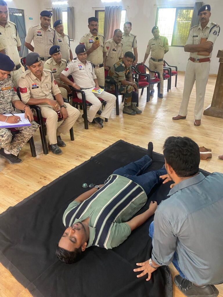सारंगढ़ । 25 जून 25 को पुलिस अधीक्षक वैष्णव के आदेशानुसार, अति पुलिस अधीक्षक एवं SDOP के मार्गदर्शन से स्वास्थ्य विभाग व रेडक्रॉस सोसायटी के द्वारा पुलिस विभाग के अधिकारी कर्मचारियों को प्राथ. उपचार (first aid ) के संबंध में पुलिस अधीक्षक कार्यालय में प्रशिक्षण दिया गया । इस दौरान डॉ. साहब द्वारा अलग अलग प्रकार की दुर्घटना के उपरांत दिए जाने वाले प्राथ. उपचार के बारे में बताया गया । जैसे सर्पदंश, पानी में डूबना, विद्युत करंट लगने पर, जहर संबंधी प्रकरण इत्यादि। हार्ट अटैक आने पर मरीज को प्रारंभिक इलाज CPR देने की प्रक्रिया के बारे में बताया गया , जिससे मौके पर ही प्रारंभिक उपचार प्राप्त हो सके । वर्तमान के बढ़ते रोड एक्सीडेंट प्रकरणों को ध्यान में रखते हुए प्रशिक्षण में रोड एक्सीडेंट के दौरान मौके पर दिए जाने वाले प्राथमिक उपचार को विस्तार से बताया गया साथ ही अत्यधिक रक्तस्राव या फ्रैक्चर होने पर कैसे मरीज को स्थिर रख हॉस्पिटल ले कर जाना है इसकी विस्तृत जानकारी दी गई।