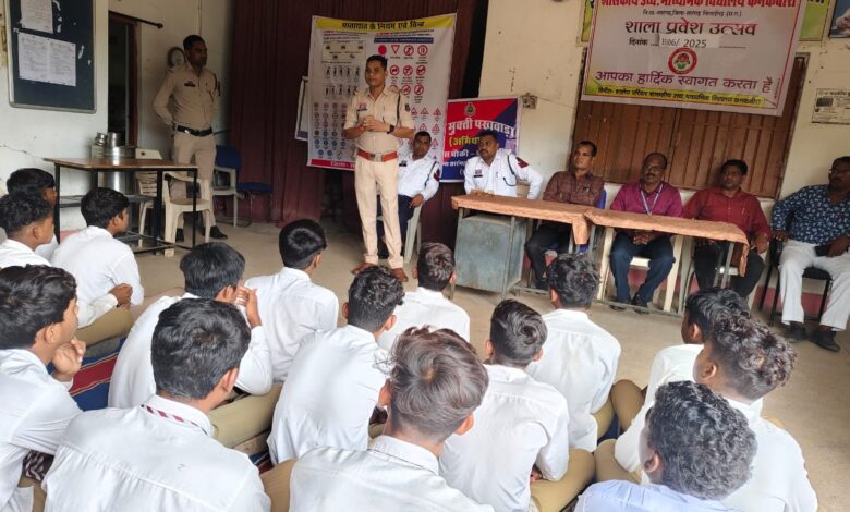 सारंगढ़ पुलिस अधीक्षक महोदय सारंगढ़ आंजनेय वार्ष्णेय के द्वारा नशा मुक्ति, यातायात जागरूकता, साइबर जागरूकता के सम्बन्ध में चलाए जा रहे अभियान के तहत आज दिनांक 26/06/2025 को पुलिस चौकी कनकवीरा एवं यातायात सेल सारंगढ़ टीम के द्वारा अतिरिक्त पुलिस अधीक्षक निमिषा पांडे एवं अनुविभागीय अधिकारी सारंगढ़ स्नेहिल साहू के मार्गदर्शन मे शासकीय उच्चतर माध्यमिक विद्यालय कनकबीरा में स्कूल के छात्र छात्राओं एवं शिक्षकों को नशापान नहीं करने के सम्बन्ध में समझाइश देते हुए नशे से होने वाले दुष्प्रभाव के बारे में बताया गया तथा अपने परिजनों को नशा से दूर रहने बताया गया एवं भारत सरकार द्वारा नशा मुक्ति के संबंध में शपथ लेकर ऑनलाइन प्रमाण पत्र प्राप्त करने हेतु निर्देश किया गया।