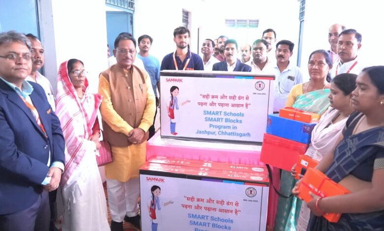 *जशपुरनगर 28 जून 2025/* मुख्यमंत्री श्री विष्णु देव साय ने आज कांसाबेल विकास खंड के बगिया हाई स्कूल में सम्पर्क स्मार्ट स्कूल और स्मार्ट ब्लाक कार्यक्रम का शुभारंभ किया और जशपुर के 50 प्राथमिक स्कूली बच्चों के लिए सम्पर्क स्मार्ट कीट और टीवी का भी वितरण किया गया।