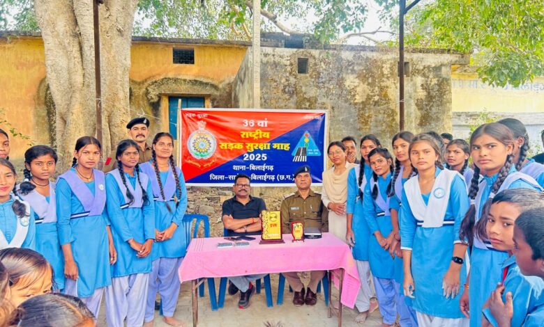 बिलाईगढ़ में सड़क सुरक्षा जागरूकता अभियान: पुलिस ने विद्यार्थियों को दी सुरक्षा की जानकारी