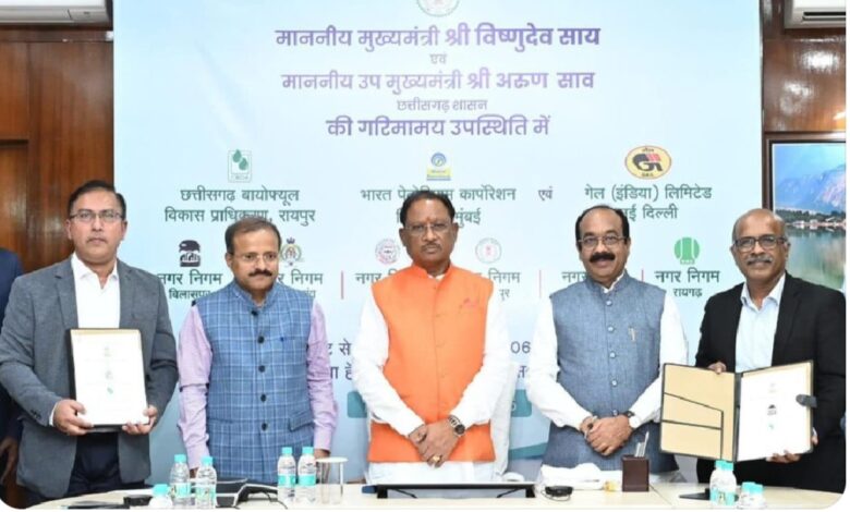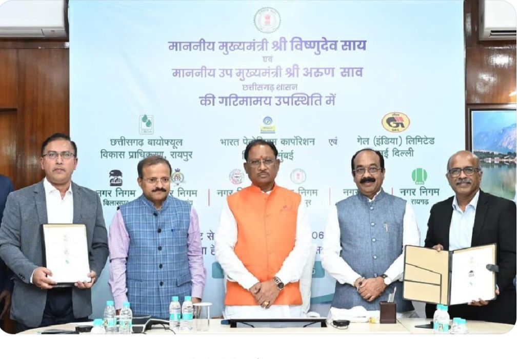 छत्तीसगढ़ सरकार ने राज्य को स्वच्छता, ऊर्जा उत्पादन और सतत विकास में नई पहचान दिलाने के लिए एक महत्वपूर्ण कदम उठाया है। मुख्यमंत्री निवास कार्यालय में हाल ही में एक त्रिपक्षीय एमओयू पर हस्ताक्षर किए गए, जिसमें छत्तीसगढ़ बायोफ्यूल विकास प्राधिकरण, गेल इंडिया लिमिटेड, भारत पेट्रोलियम और प्रदेश के 6 नगर निगम शामिल हैं।