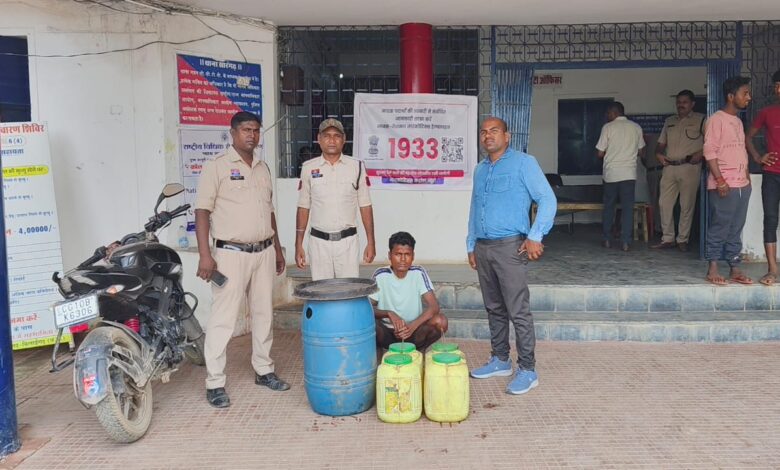 सारंगढ़ । पुलिस अधीक्षक आँजनये वार्ष्णेय,अ. पुलिस अधीक्षक श्रीमती निमीषा पाण्डेय एवं एसडीओपी श्रीमती स्नेहिल साहू के द्वारा अवैध शराब बिक्री पर रोक थाम हेतु लगातार निर्देशित किये जाने पर थाना प्रभारी कोतवाली निरीक्षक कामिल हक के कुशल मार्गदर्शन में पुलिस स्टाफ के द्वारा अवैध शराब बिक्री करने वाले व्यक्ति के विरूद्ध कार्यवाही की गई।अप0क्रं0 355/25 धारा 34 (2),59 (क) आब. एक्ट में 20 जुलाई 25 को जरिये मुखबिर सूचना मिला कि – ग्राम फर्सवानी में नदी किनारे खरदरहाखार में भारी मात्रा में अवैध शराब बिक्री करने हेतु रखा है । सूचना पर हमराह स्टाफ व गवाहान के घटना स्थल ग्राम फर्सवानी नदी किनारे खरदरहाखार पहुंचकर घेरा बंदी कर रेड कार्यवाही किये । जिसमें मौके पर आरोपी शनी कुमार खड़िया निवासी फर्सवानी मिला व अन्य दो आरोपी फरार हो गये तथा जिसके कब्जे से 4 नग पीला कलर की प्लास्टिक डिब्बा 15 लीटर क्षमता वाली में भरी हुई 60 लीटर एवं नीला कलर के प्लास्टिक डिब्बा 50 लीटर क्षमता वाली में 50 लीटर हाथ भटटी कच्ची महुआ शराब 110 लीटर कीमती 22 हजार रू. को गवाहों के समक्ष जप्ती पत्रक में जप्तकर कब्जा पुलिस लिया गया । यह मामला अजमानतीय होने से आरोपी शनी कुमार खड़िया विधिवत गिरफ्तार कर न्यायिक रिमाण्ड पर भेजा गया । दो अन्य फरार आरोपी का पता तलाश किया जा रहा है उक्त कार्यवाही में निरीक्षक कामिल हक, प्रआ सोनसाय यादव आ. दिलीप तेन्दुवे, सूरेन्द्र पटेल , ज्वाला सिंह बंजारे , भुनेश्वर चन्द्रा, अमित खुंटे, ओमचंद साहू एवं समस्त थाना स्टाफ की प्रमुख भूमिका रही।