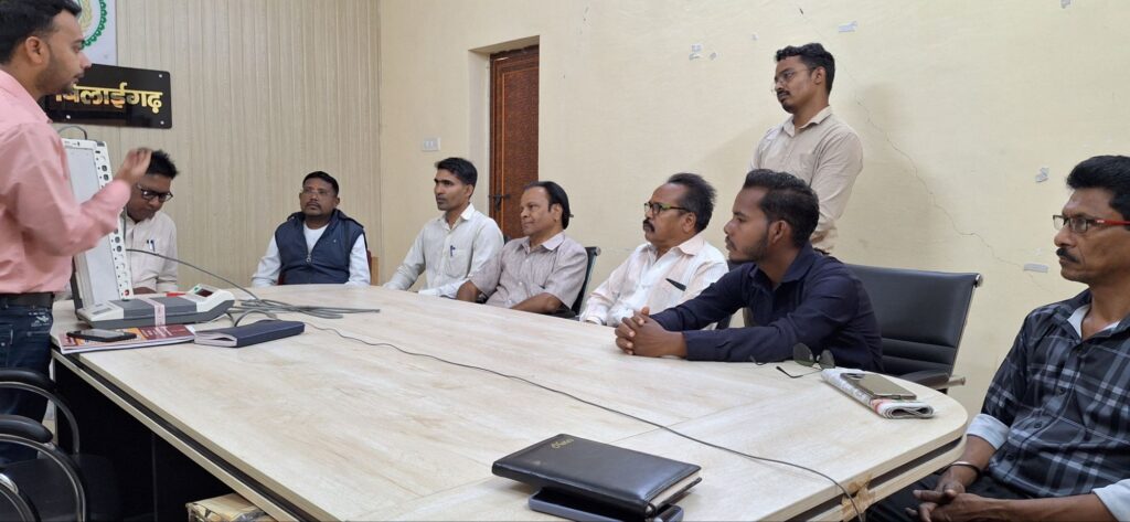 सारंगढ़ बिलाईगढ़, 3 फरवरी 2025/ नगरीय निकाय एवं त्रि-स्तरीय पंचायत चुनावों में शत प्रतिशत मतदान कराने के उद्देश्य से राज्य निर्वाचन आयोग के निर्देश पर ईवीएम (इलेक्ट्रॉनिक वोटिंग मशीन) के उपयोग के संबंध में कलेक्ट्रेट सारंगढ़ में मीडिया कार्यशाला का आयोजन किया गया, जिसमें उप जिला निर्वाचन अधिकारी एस के टंडन, ईडीएम गंगाधर विश्वकर्मा, विनोद बंजारे, जिला मास्टर ट्रेनर चूड़ामणि गोस्वामी, पत्रकार यशवंत सिंह ठाकुर भरत अग्रवाल, ओंकार केशरवानी, देव कुमार जाटवर उपस्थित थे।