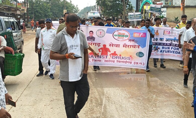 सारंगढ़ । 10 वा आयुर्वेद दिवस, नशा मुक्त सारंगढ़ सेवा मैराथन रैली कलेक्टर डॉ संजय कन्नौजे के मार्ग दर्शन में डॉ यशवंत स्वर्णकार जिला नोडल अधिकारी आयुष व विनय तिवारी उप संचालक समाज कल्याण विभाग के संयुक्त तत्वाधान मे राष्ट्रीय स्वास्थ्य नीति N HP 2017 को आकार देने सामुदायिक भागीदारी के माध्यम से आयुर्वेद में विश्वास बढ़ाने रोग से आरोग्यता की अवधारणा को सशक्त बनाने तथा आयुर्वेद को वैश्विक स्वास्थ्य पटल पर स्थापित करने जैसे लक्ष्य को पूर्ण करने हेतु जिला स्तर पर जिला मुख्यालय से भारत माता चौक तक दौड़ का आयोजन किया गया एवं जिला मुख्यालय पर ही एक पौधा अपनाए अभियान के तहत डॉ वर्षा बंसल डिप्टी कलेक्टर द्वारा रक्त चंदन , श्वेत चंदन तथा लौंग पौधे का रोपण किया गया । आयुर्वेद को जीवन में अपनाने शपथ दिलाया गया रोग प्रतिरोधक क्षमता वृद्धि हेतु औषधि काढ़ा का वितरण किया गया । आयुष विभाग समाज कल्याण विभाग शिक्षा एवं खेल विभाग स्काउट गाइड तथा छात्र छात्रों की सक्रिय सहभागिता रही ।
