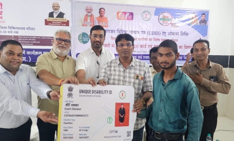 सारंगढ़ के स्थानीय जिला चिकित्सालय में समाज कल्याण विभाग और स्वास्थ्य विभाग द्वारा संयुक्त रूप से स्वास्थ्य परीक्षण और दिव्यांगजनों के लिए विशिष्ट पहचान पत्र बनाने के साथ UDID कार्ड वितरण शिविर आयोजित किया गया। इस अवसर पर 5 दिव्यांगजनों को विशिष्ट पहचान पत्र प्रदान किए गए।