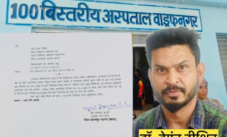 प्राप्त जानकारी के अनुसार, छत्तीसगढ़ प्रदेश नर्सेस एसोसिएशन की प्रांताध्यक्ष श्रीमती सुमन शर्मा द्वारा 23 सितंबर 2025 को मुख्य चिकित्सा एवं स्वास्थ्य अधिकारी (CMHO) बलरामपुर को पत्र भेजा गया था।