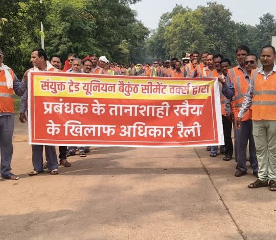 तिल्दा नेवरा, 17 अक्टूबर 2025 : आज अल्ट्राटेक बैकुंठ सीमेंट वर्क्स के मजदूरों के द्वारा अल्ट्राटेक बैकुंठ प्रबंधन के द्वारा निरंतर किये जा रहे हैं मजदूरों के उपर शोषण व लंबीत मांगो पुरा नही किये जाने से यहां के मजदूर आक्रोश व्यक्त करते हुए। पिछले 11 दिनो से संयंत्र के मुख्य द्वार पर रात दिन शांतिपूर्ण तरीके से धरने पर बैठे है। जिसमें यहां के संयुक्त ट्रैडयूनियन के बैनर तले जिसमे एटक यूनियन, छत्तीसगढ़ सीमेंट एवं खदान स्टील कल्याणकारी श्रमिक संघ बहेसर एवं इंटक यूनियन आदि तीनो की सहमति व पूर्ण सहयोग से यह आंदोलन किया जा रहा है।