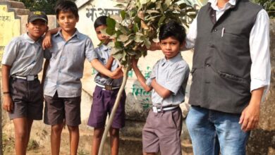 शिक्षक और बच्चों ने पेड़ो की रक्षा का लिया संकल्प , एक साल पहले लगाया था एक पेड़ मां के नाम