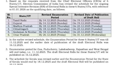 *14 दिसंबर तक गुजरात व तमिलनाडु और यूपी में 26 दिसंबर तक फॉर्म भर सकेंगे*